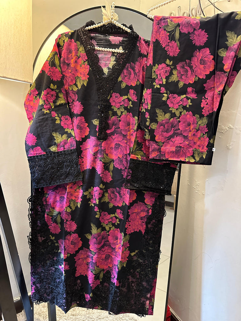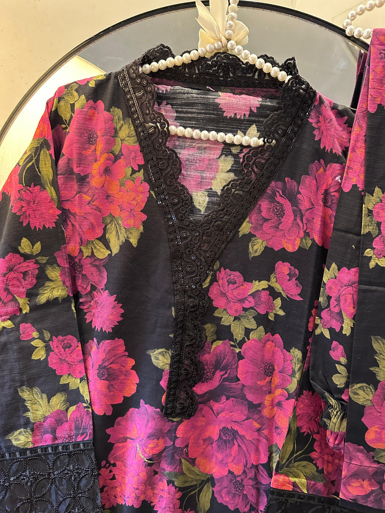 Be bold and beautiful with Pink Blooms! This gorgeous v-neck top features stunning sequin embroidery on the neckline, sleeves, and hem. The unique dye and print add a touch of fun to this chic and stylish piece. Elevate any outfit with this must-have addition to your wardrobe.